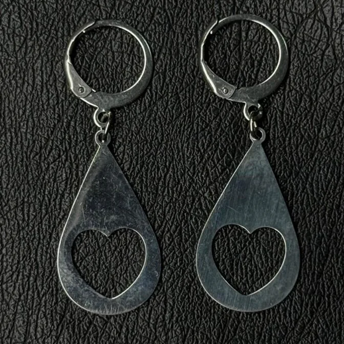 Aros colgantes en forma de gota con diseño de corazón calado.