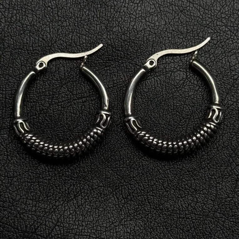 Aros tipo argolla con diseño bali, trabajados en acero inoxidable.