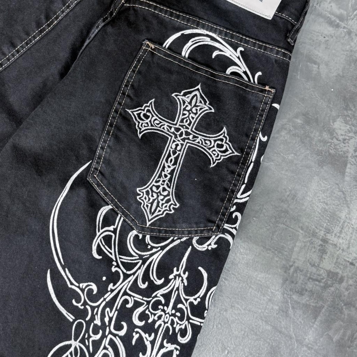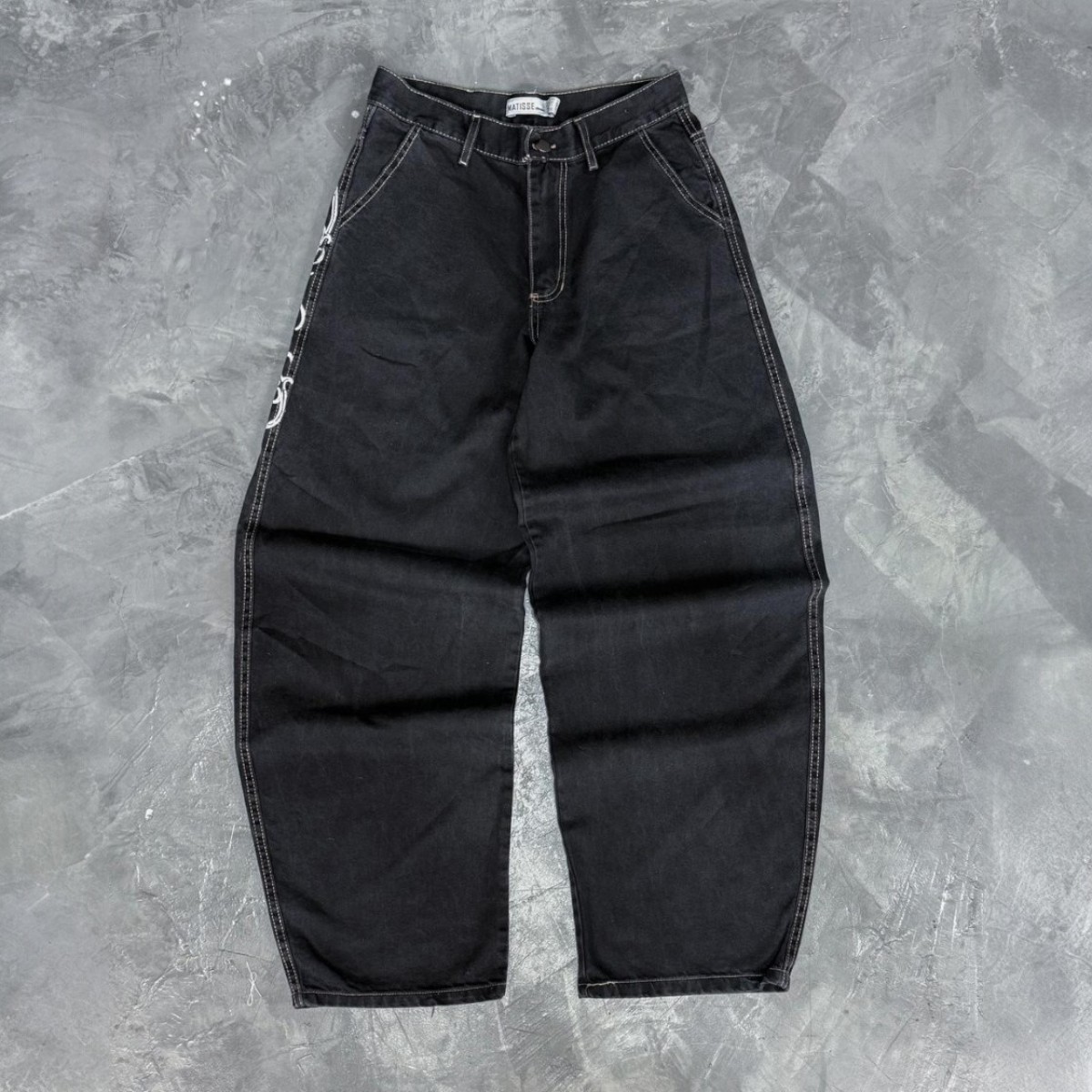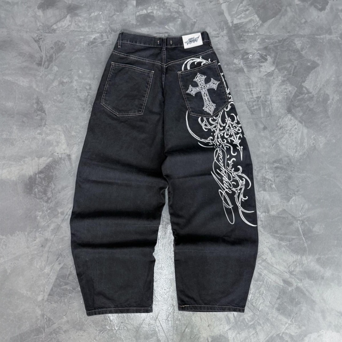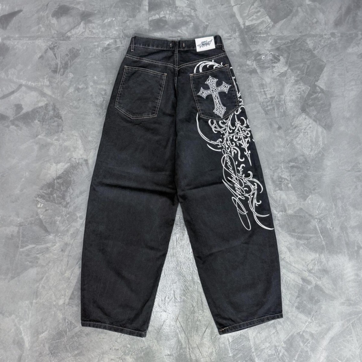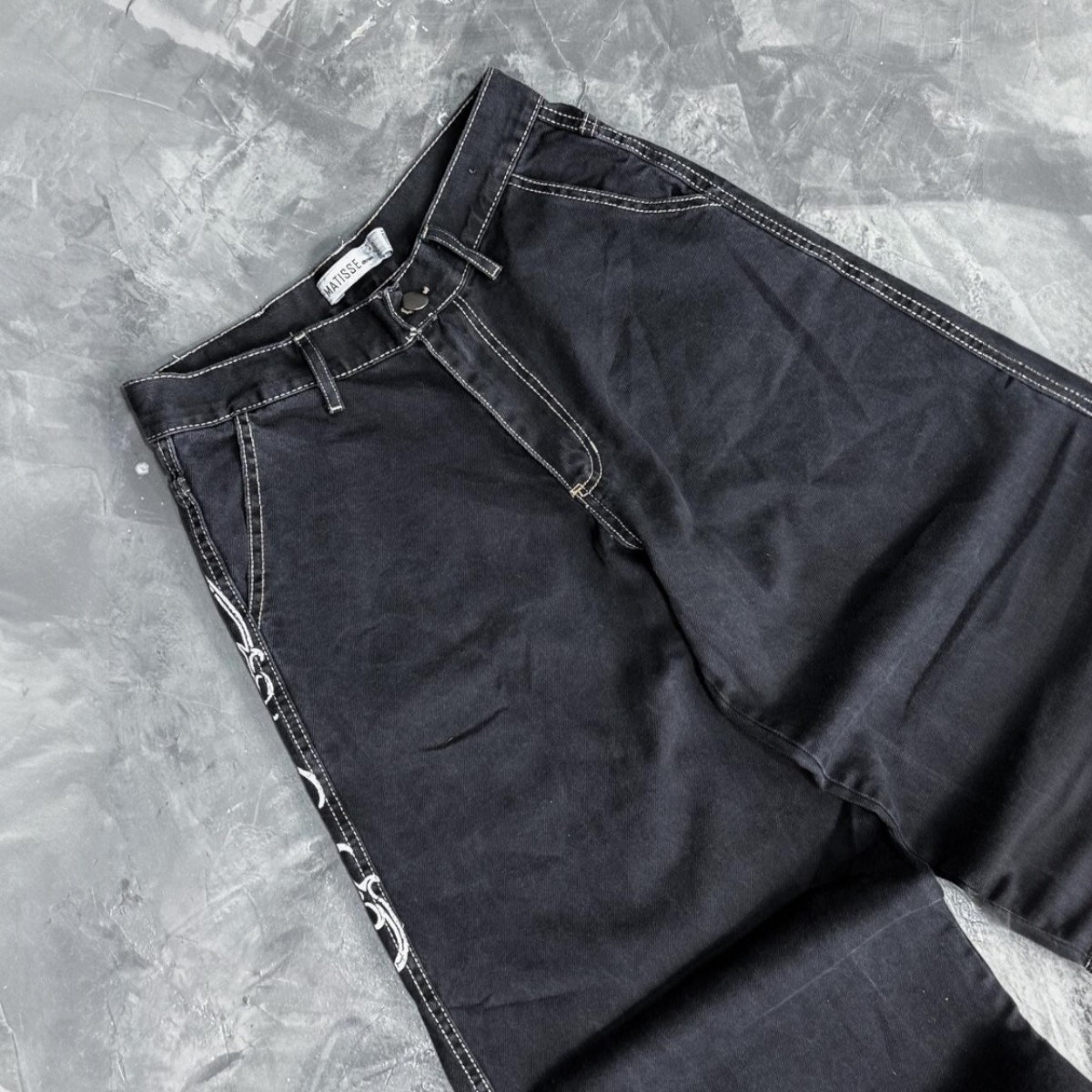 ▪️Color: Negro stone + ESTAMPA en la pierna y BORDADO en el bolsillo + Diseño con bolsillo delantero diagonal