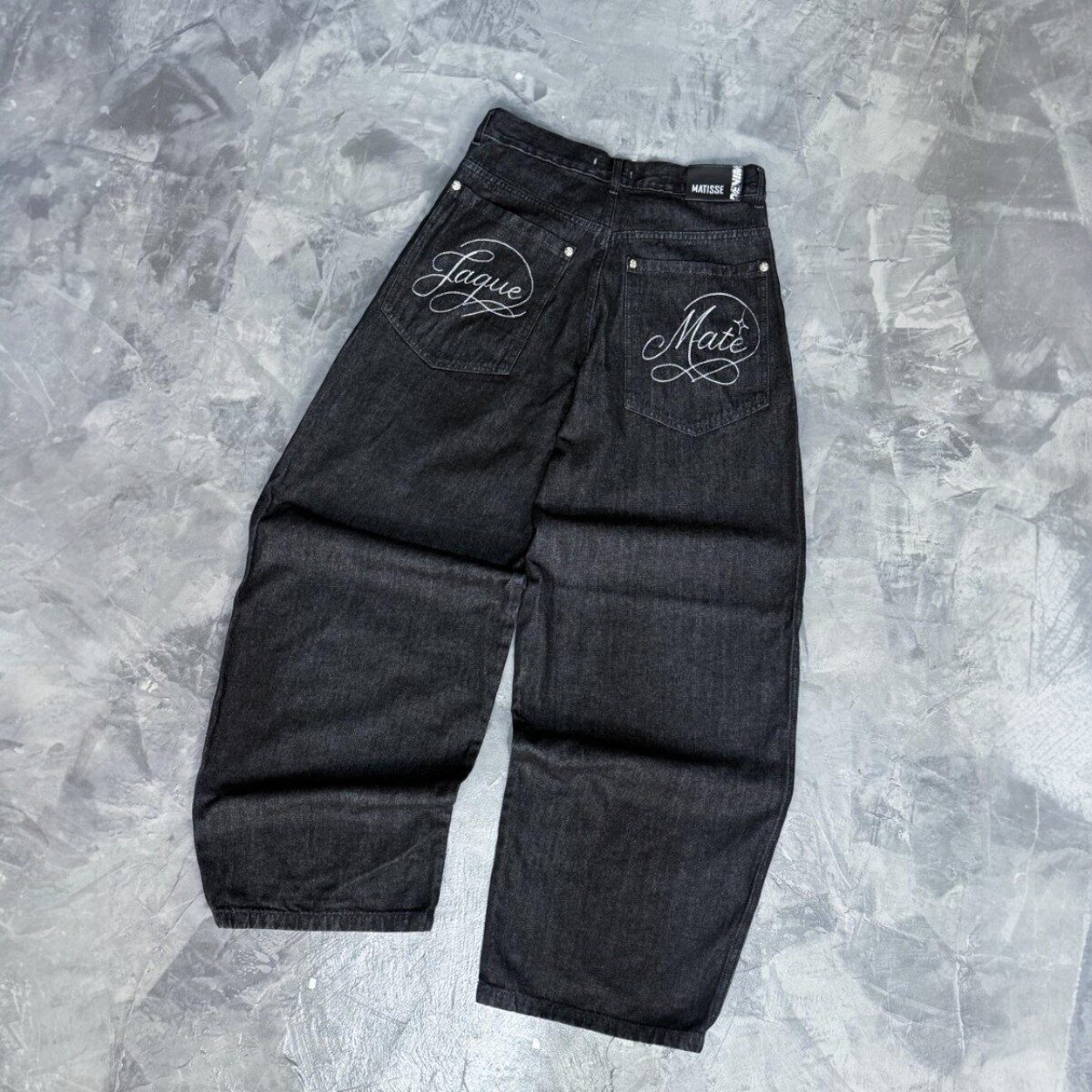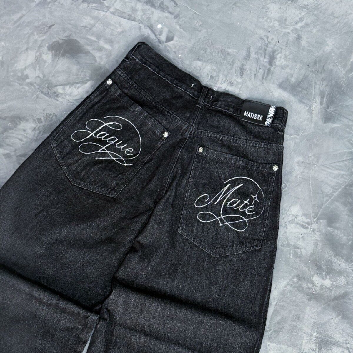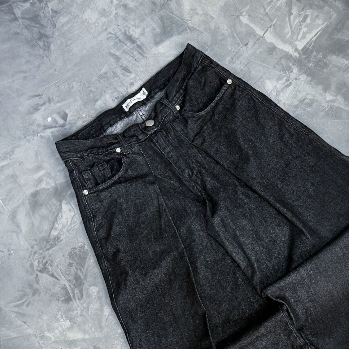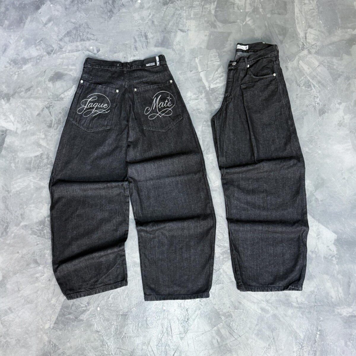 ▪️Color: negro RAW DENIM+ BORDADO+ pinzas delanteras+ tachas de bronce