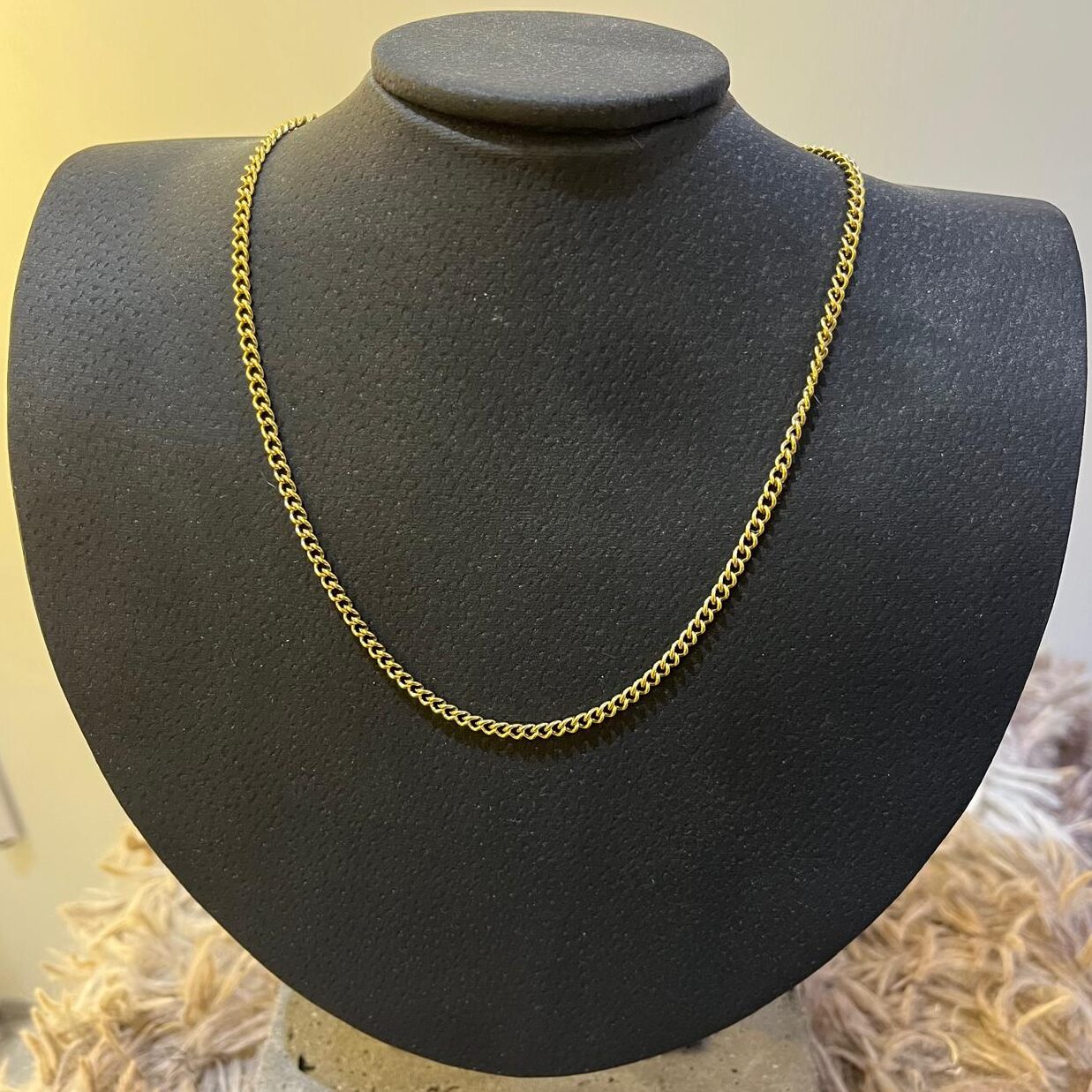 Si buscás una cadena dorada que se note, esta es la indicada. La Aurora Cubana tiene eslabón plano tipo curb, un diseño clásico que queda increíble sola o con dije. Ideal para uso diario porque combina con todo y levanta cualquier outfit al instante.