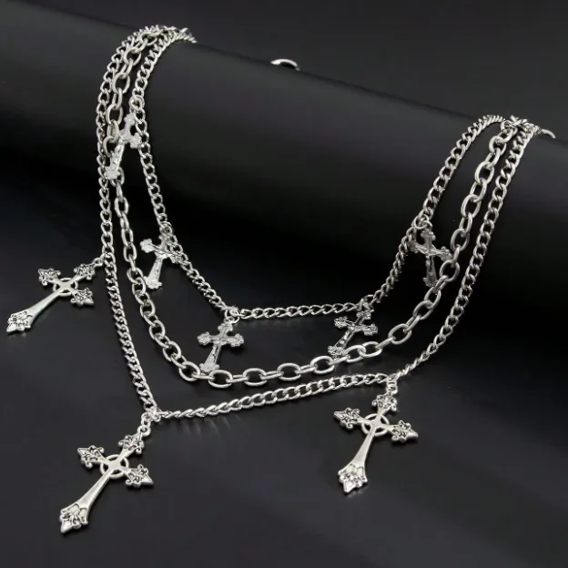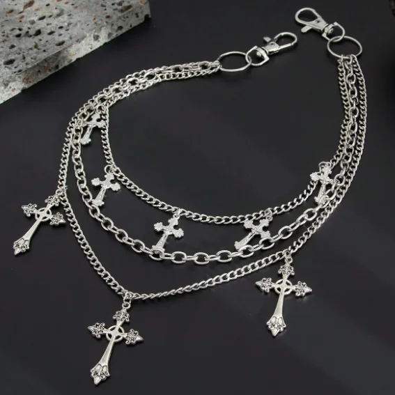Accesorio urbano de triple cadena con dijes de cruces.