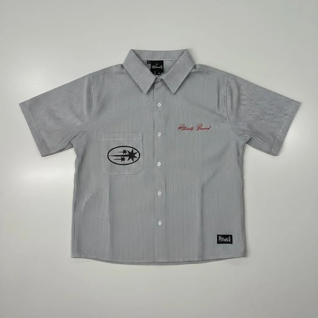 Camisa boxy fit de seersucker con rayas finas verticales.
