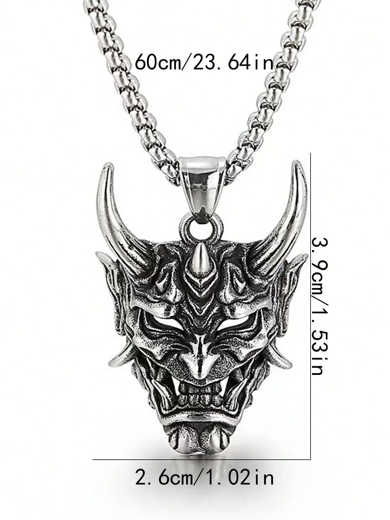 Collar con dije de máscara Oni siendo la cadena de acero inoxidable y el dije de aleacion de zinc