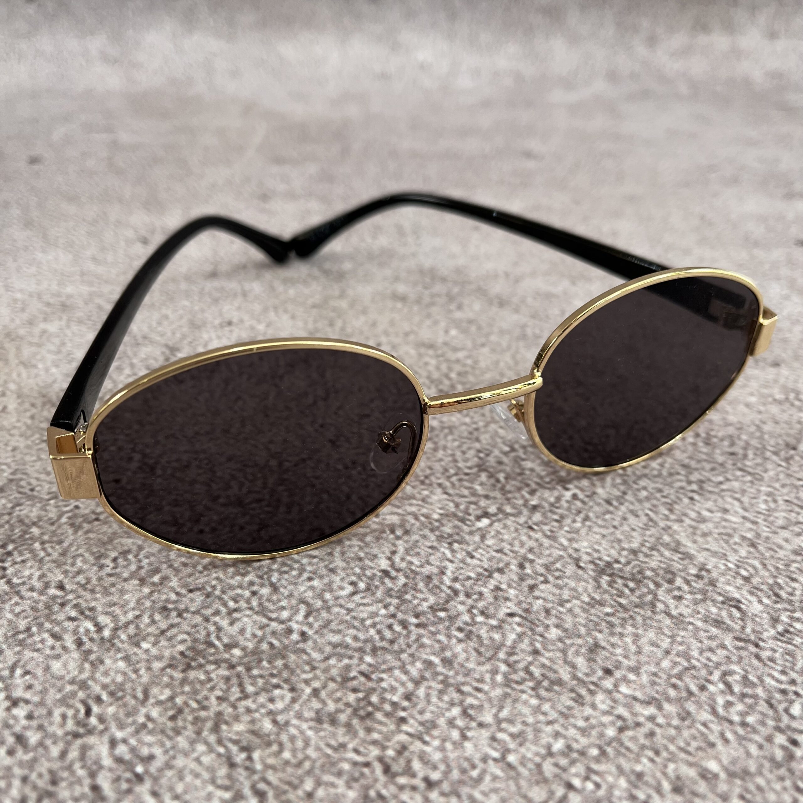 Elegí un estilo más fino con estas gafas retro Gold Black, un modelo con armazón metálico dorado, patillas y lentes negras que combina elegancia y un toque retro.