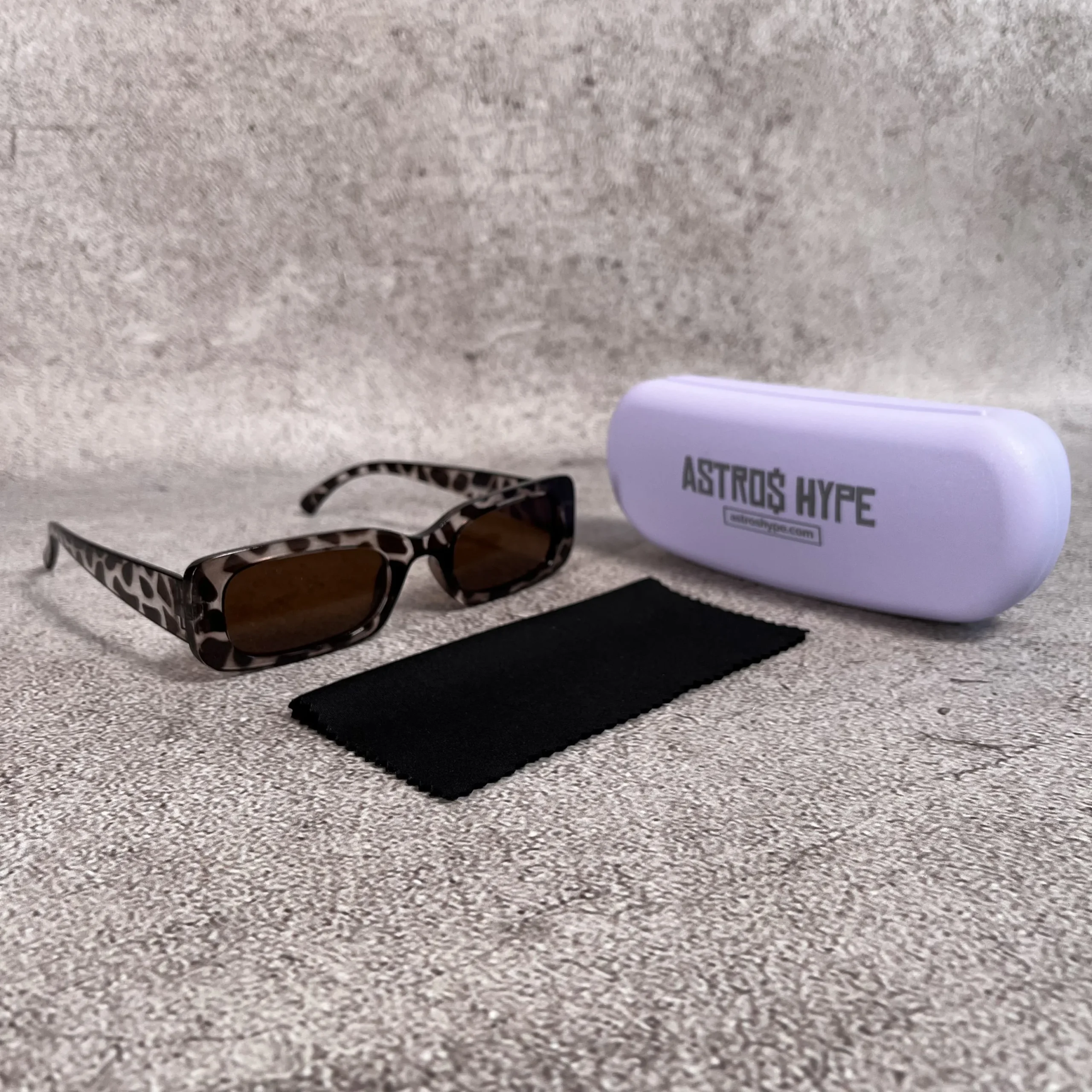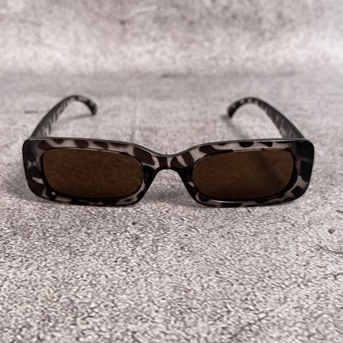 Anteojos de sol de diseño rectangular con marco carey clásico. Un modelo atemporal y versátil, ideal para quienes buscan un estilo sobrio, vintage y fácil de combinar. El lente marrón aporta una visión más cálida y confortable para el uso diario.