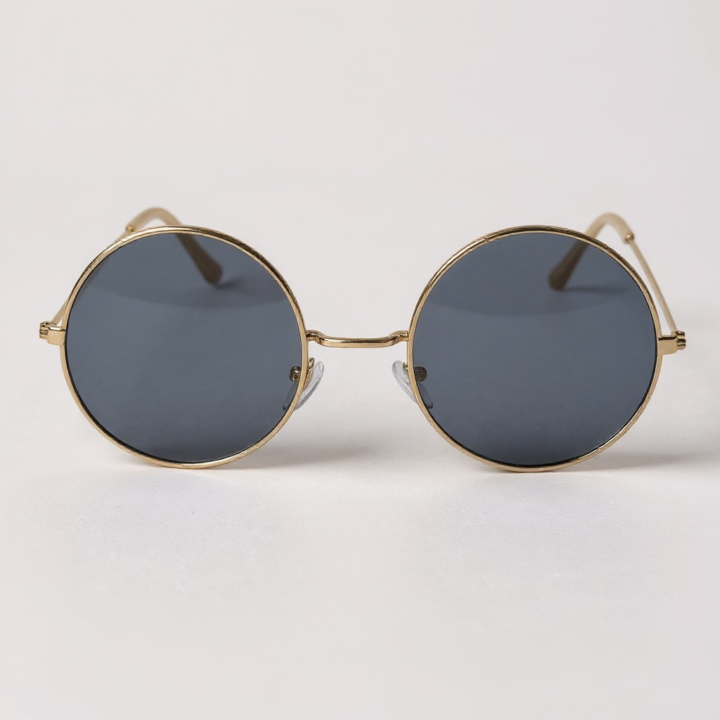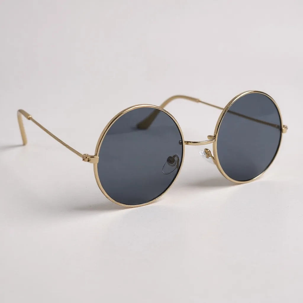 Gafas con marco metálico dorado y forma redonda clásica. Lentes gris oscuro de policarbonato. Un modelo icónico que combina lo vintage con lo moderno.