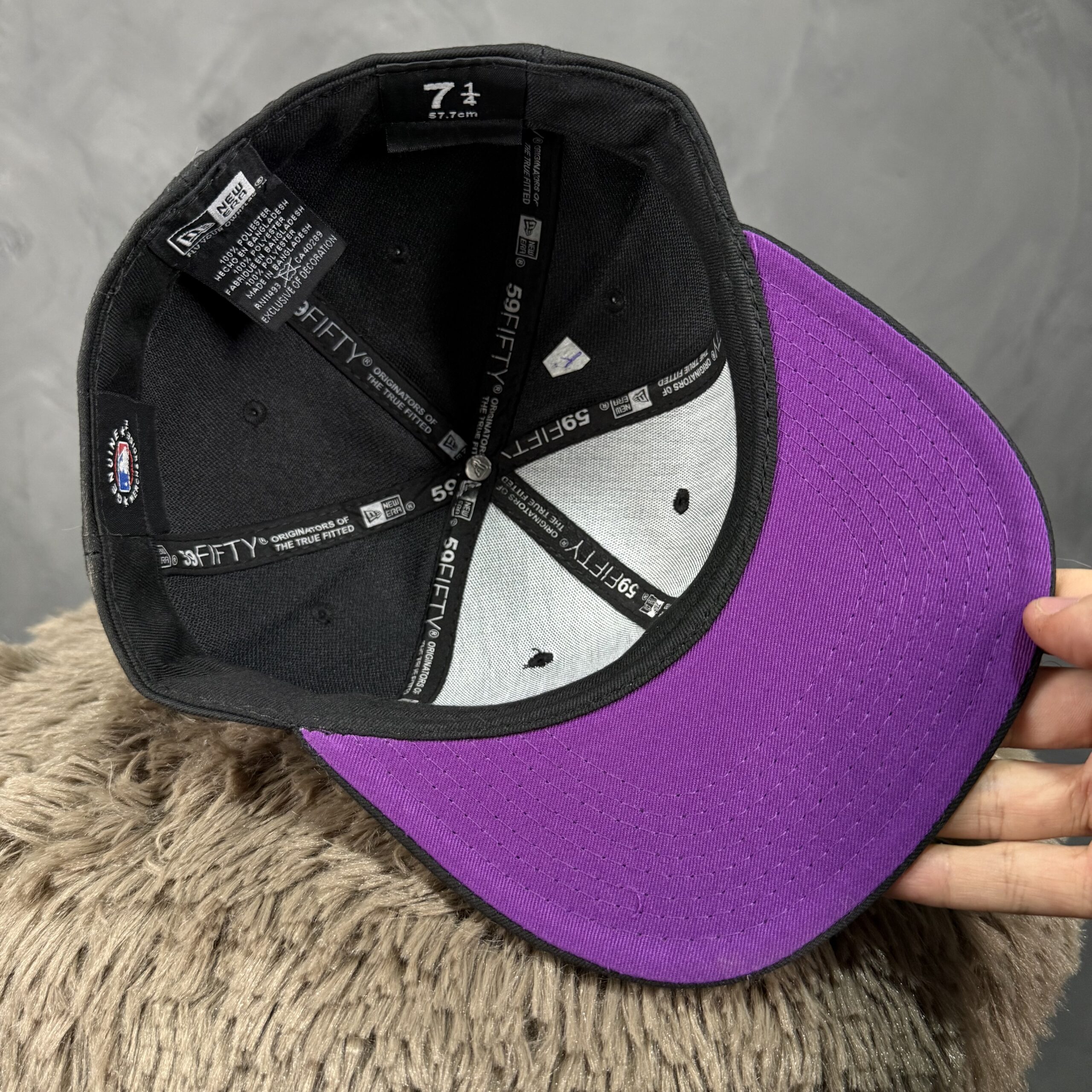Gorra New Era tipo fitted (cerrada) en color negro con violeta,. Un modelo bien llamativo, ideal para outfit urbano
