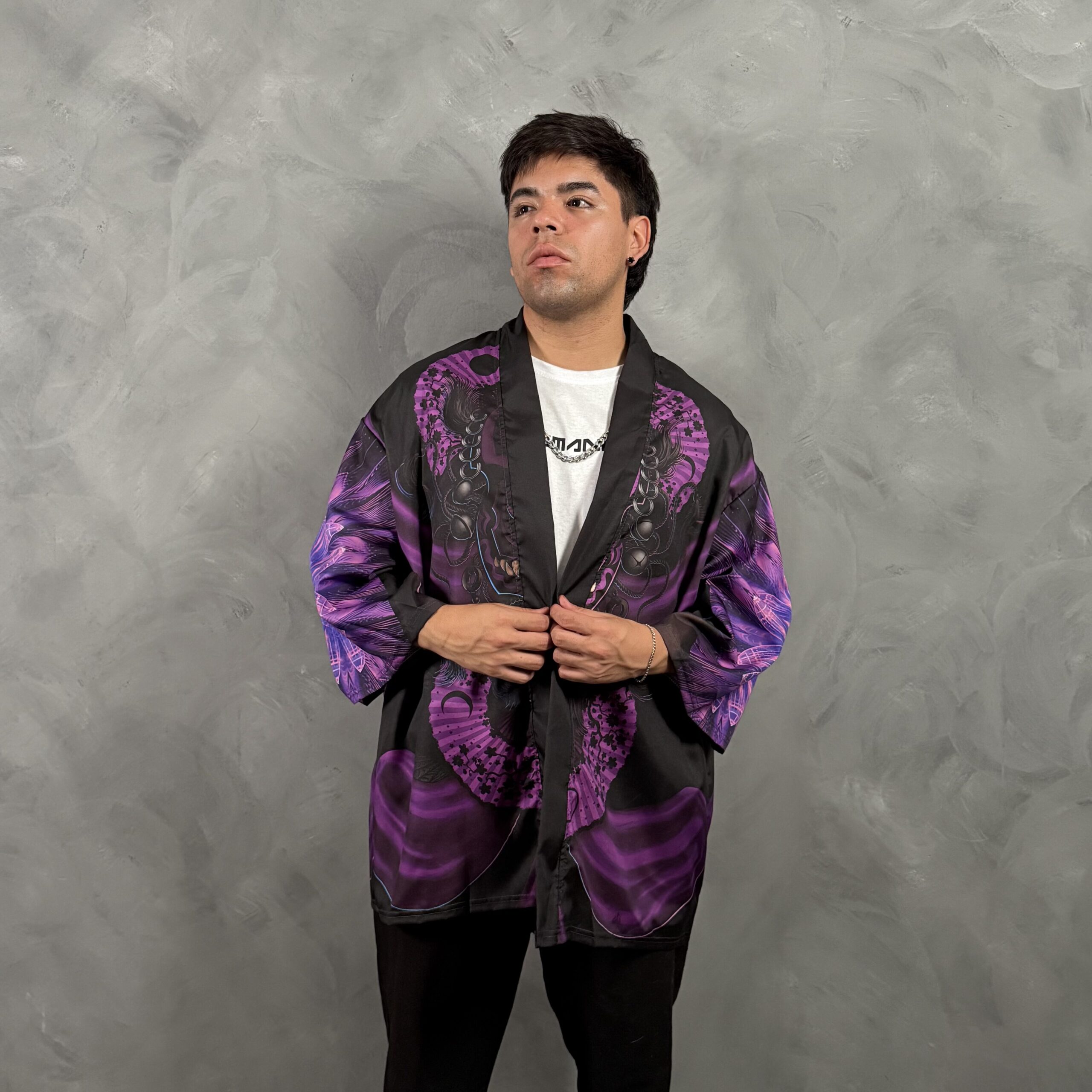 Haori oversize unisex con estampa full print de oni en la espalda.