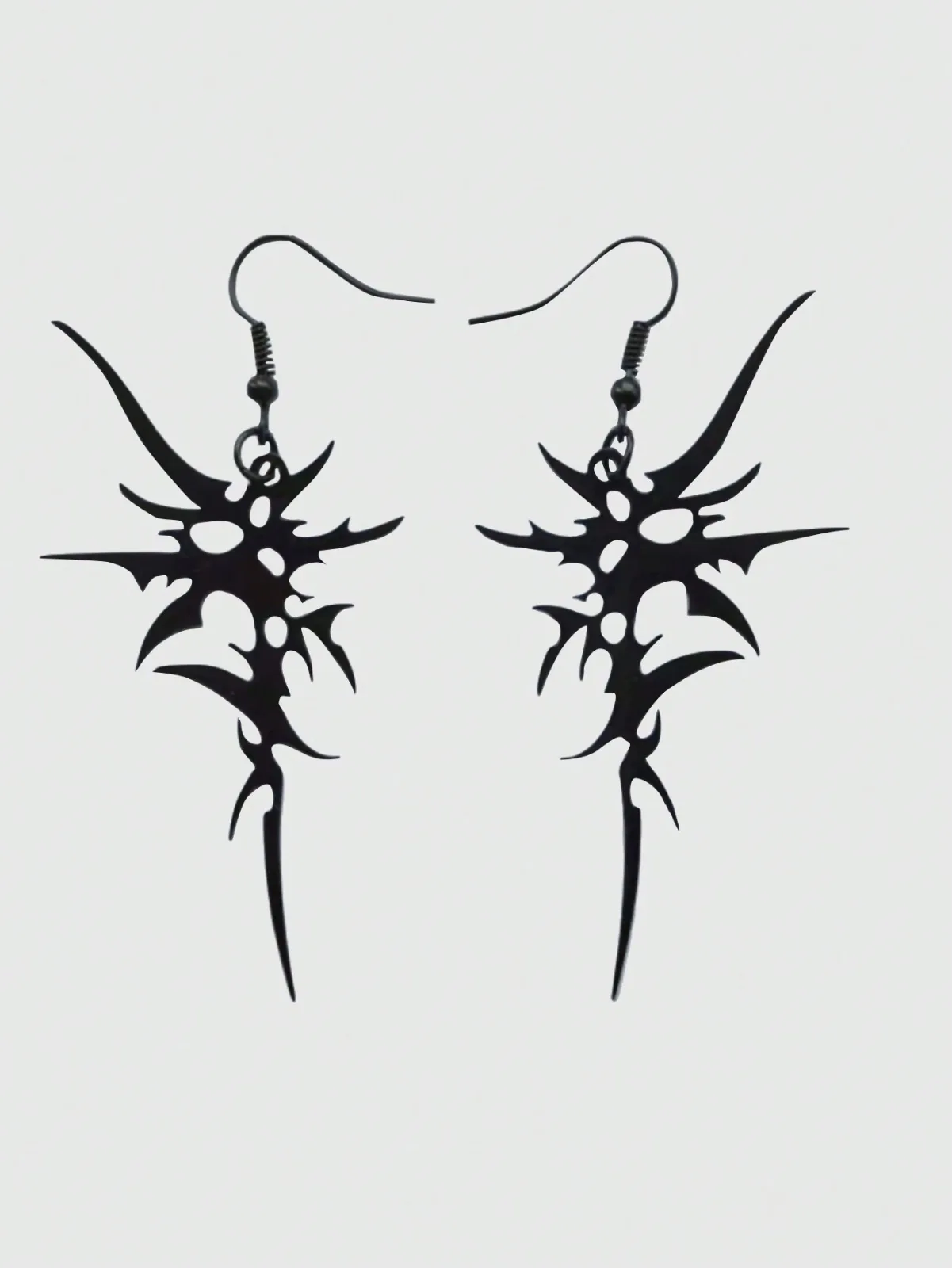 Si te gusta lo dark con presencia, estos aros van directo al punto: diseño tribal filoso, bien llamativo, pero liviano para usar varias horas. Levantan cualquier outfit negro, urbano, rock o alternativo.